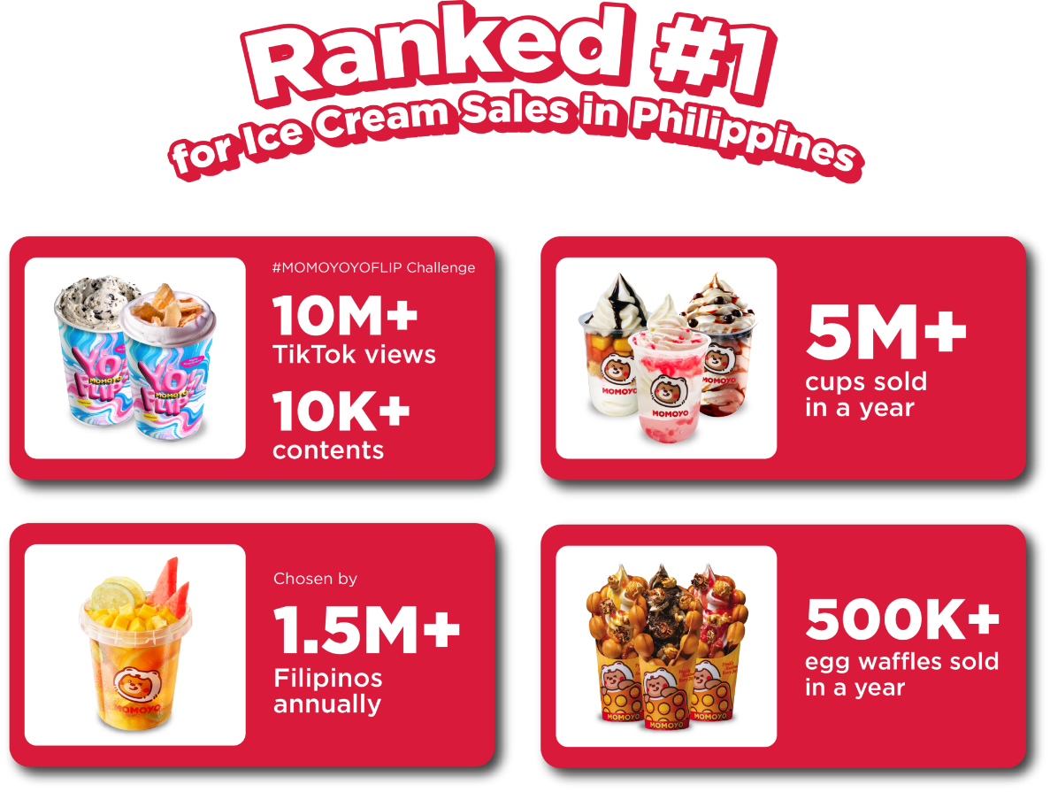 In October 2023, MOMOYO launched in the Philippines, bringing its playful aesthetic, signature ice cream, creative tea drinks, and feel-good moments nationwide.